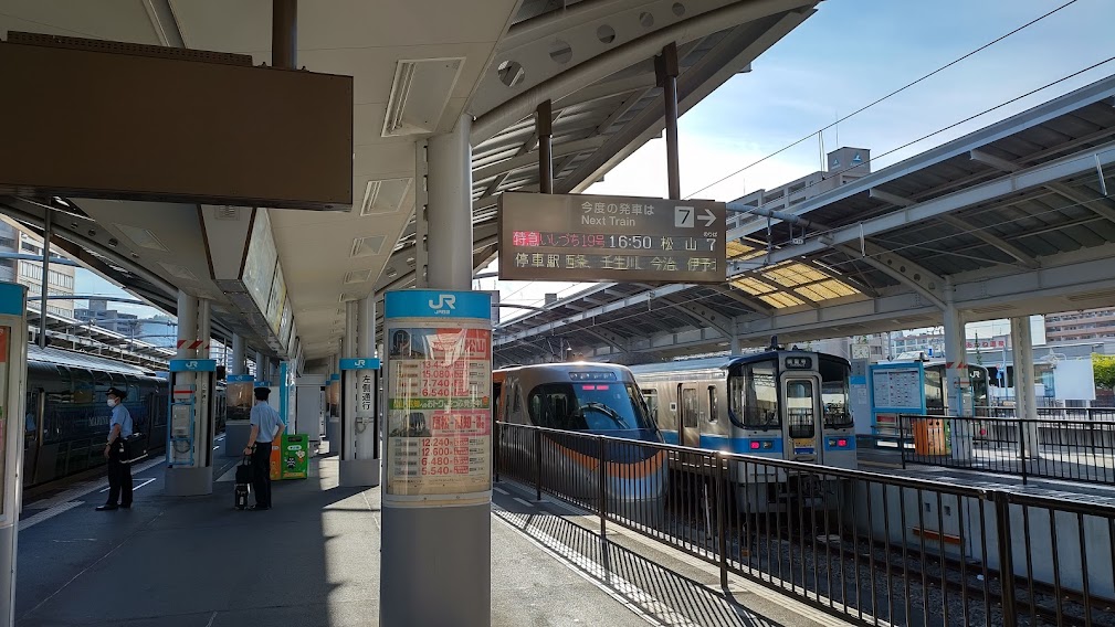 高松から2時間弱の旅。駅のホームからも見えるくらい近いです。