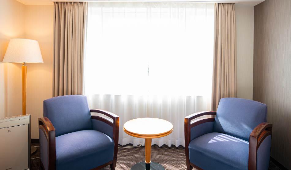 広々としたツインルームです。多様な客室アイテムが、